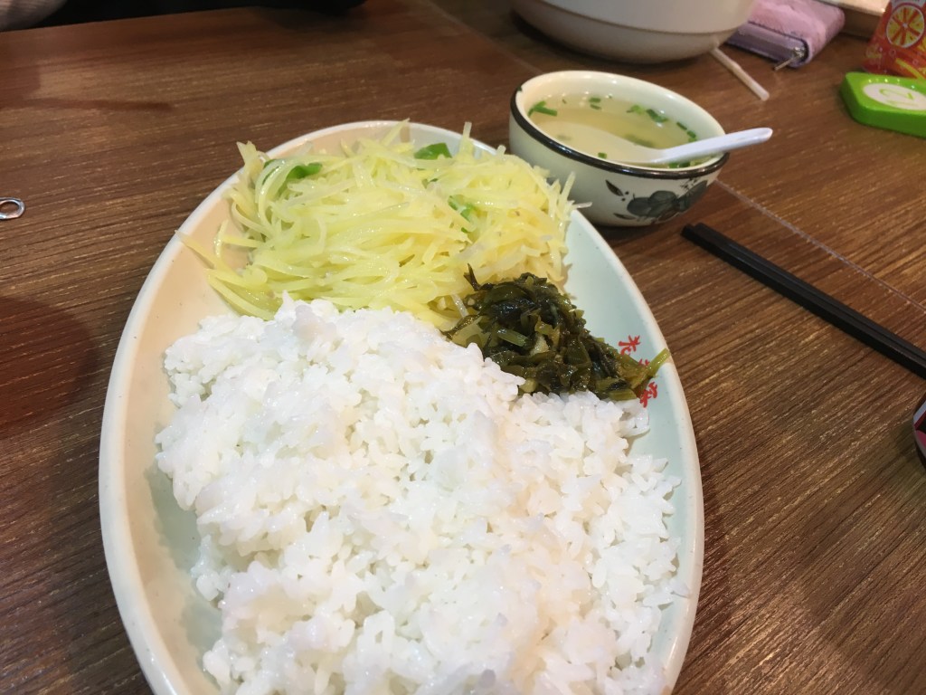 Later that evening we all headed to a small restaurant just down the road from the international dorms. With over half the group vegetarian, and thanks to our attempts to say wǒ men bù chī ròu (we don’t eat meat), we were served boiled rice with shredded potato (think undercooked oven chips soaked in oil). It tasted okay but was nothing special and certainly nothing like anything we’d had from a Chinese takeaway back home.