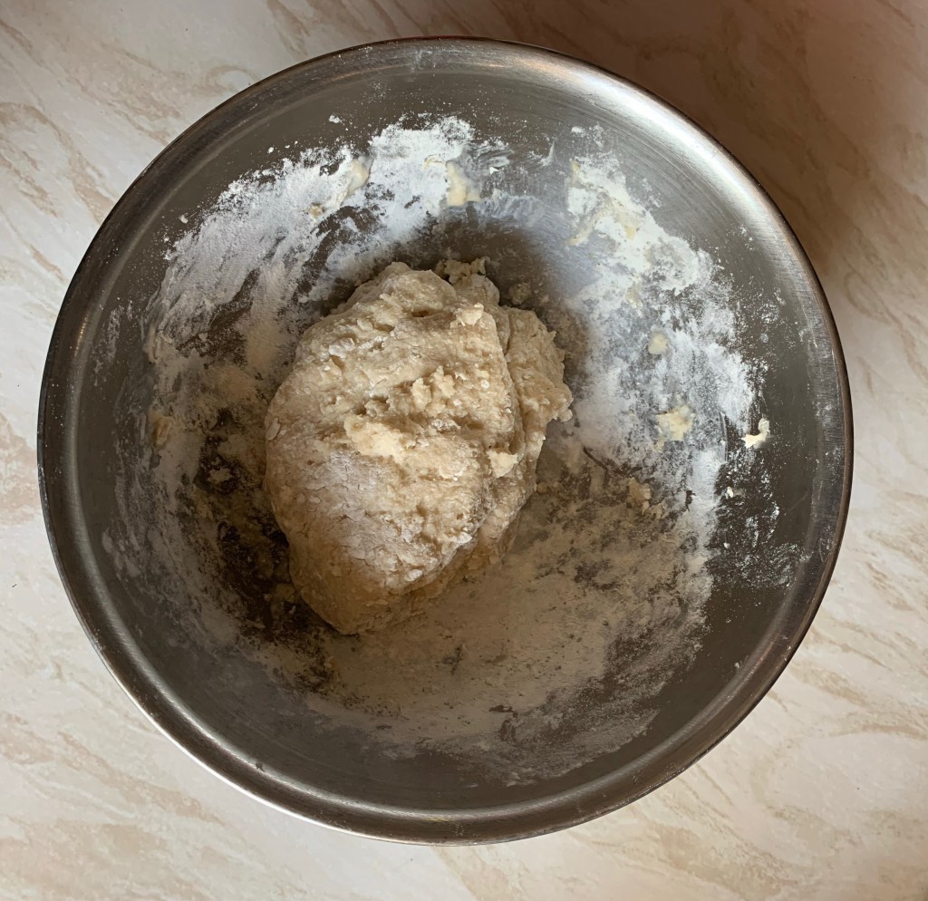 Step 1: Make the dough by combining the flour, salt, garlic and hot water. Be careful not to add too much water as if the dough becomes too wet or sticky, forming the pancakes become much more difficult. If the dough does become too wet, add some more flour!