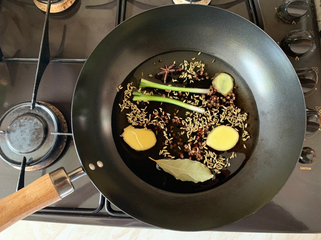 Step 2: Add all the Group 2 ingredients to a cold wok and begin to cook over a low heat.