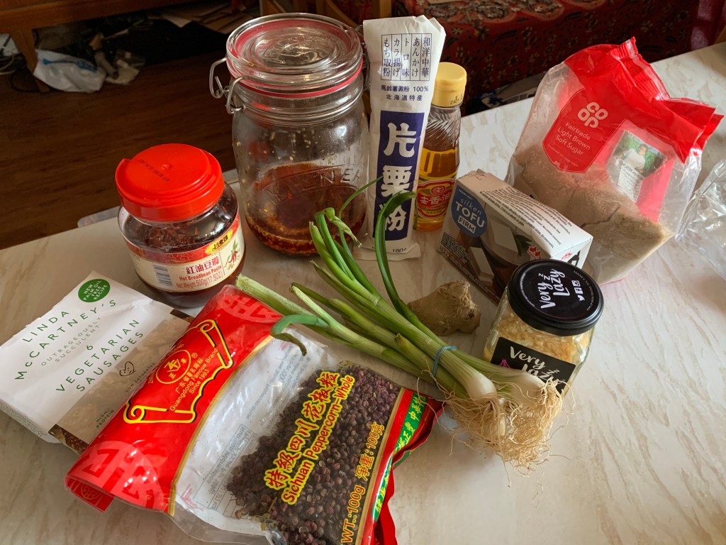 The dish, with its signature red colour, compromises of both soft, creamy tofu and crispy minced pork cooked in a numbingly spicy sauce containing a serious helping of Sichuan pepper and 豆瓣酱(broad bean chilli) paste. My return to vegetarianism meant that I was faced with the dilemma of how to ‘vegetarian-ise’ the dish without compromising on its traditional flavour. It turned out that the three Linda McCartney sausages that were in our freezer made for the perfect substitute and something that I definitely recommend if you want to recreate the crispy texture of fried minced pork. As a result the dish ended up being entirely vegan! The recipe below is based on a similar vegan recipe which used shiitake mushrooms as a meat alternative, however I found that the vegetarian sausages made for a much more realistic substitute and so have included them in my recipe!